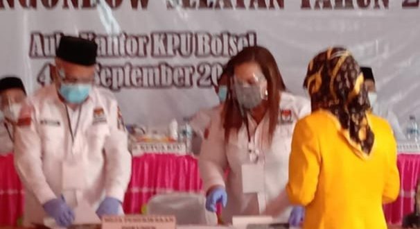 JurnalMongondow.com-Komisi Pemilihan Umum (KPU) Kabupaten Bolaang Mongondow Selatan (Bolsel) Sabtu (05/08/20) Siang tadi, menerima berkas pasangan bakal calon bupati dan wakil bupati Riston Mokoagow-Selvia Van Gobel (RISKI).