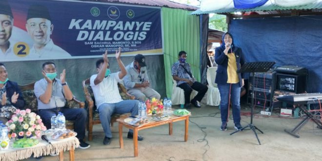 JM.com-BOLTIM – Kegiatan Kampanye Dialogis Pasangan Calon (Paslon) Bupati dan Wakil Bupati Bolaang Mongondow Timur (Boltim), Nomor Urut 2, Sam Sachrul Mamonto (SSM) – Oskar Manoppo (OPPO), di Desa Dodap Kecamatan Tutuyan, Jumat (9/10/2020) sore tadi, cukup berkesan di mata Politisi Partai Nasdem, Seska A Budiman yang tak lain istri tercinta Sachrul.