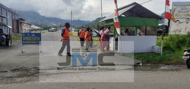 JurnalMongondow.com-KOTABUNAN, – Protokol kesehatan (protkes) di Kecamatan Kotabunan, Kabupaten Bolaang Mongondow Timur (Boltim), terus digalakkan. Adanya Pemberlakuan Pembatasan Kegiatan Masyarakat (PPKM), Sangadi (kepala desa, red), Camat Kotabunan serta pihak kepolisian memberlakukan pos penjagaan di pintu masuk Pasar Kotabunan, Desa Kotabunan Selatan, Sabtu, (28/8/2021).