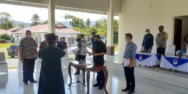 JM.com,Boltim, – Bupati Kabupaten Bolaang Mongondow Timur (Boltim), Sam Sachrul Mamonto, S.Sos., melantik pejabat Sangadi (kepala desa, red) Bongkudai, Kecamatan Modayag Barat, bertempat di pendopo Dinas Pendidikan dan Kebudayaan (Disdikbud) Boltim, Kamis (30/9/2021).