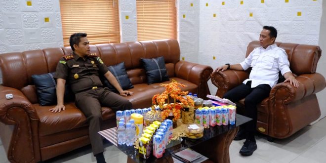 JM.COM,BOLTIM-Bupati Bolaang Mongondow Timur (Boltim) Sam Sachrul Mamonto, berkunjung di Kantor Kejaksaan Negeri Kotamobagu.Sekira pukul 11.00 WITA, Sedan Toyota Camry dengan nomor polisi DB 1 N memasuki halaman parkir kantor Kejaksaan Negeri Kotamobagu.Usai parkir di depan pintu masuk turun dari kendaraan tersebut Bupati Boltim Sam Sahrul Mamonto dan langsung disambut Kepala Kejaksaan Elwin Agustian Khahar SH MH yang kemudian langsung menuju ruang kerja Kejari Kotamobagu.Ditemui saat keluar dari ruang kerja, Bupati Sahrul mengatakan kunjungan ini berkaitan dengan koordinasi sebagai ketua Forkopimda Boltim terkait hal-hal menyangkut kedaerahan.“Sudah lama kami selaku Forkopimda tidak bersilahturahmi. Sehingga dalam kesempatan ini saya datang mengunjungi pak kejari dan nanti ke pak dandim, kapolres dan ketua pengadilan untuk di undang rapat Forkopimda. Soal lokasi nanti dibicarakan lagi,” terang Bupati.Yang cukup membuat surprise kata bupati, dirinya disuguhi menu makan siang ikan sidat atau biasa disebut ‘sogili’ santan oleh Kejari.“Enak dan cukup menggugah selera makan,” ujar mantan jurnalis ini.Ditambahkan Kejari Elwin, mereka juga sempat membicarakan terkait Porprov di Bolmong.“Yang kami bicarakan juga terkait porprov dan hal hal yang lain,” tambah Kejari.Bupati Boltim kemudian diantar langsung Kejari ke mobil dinas bupati.(*)