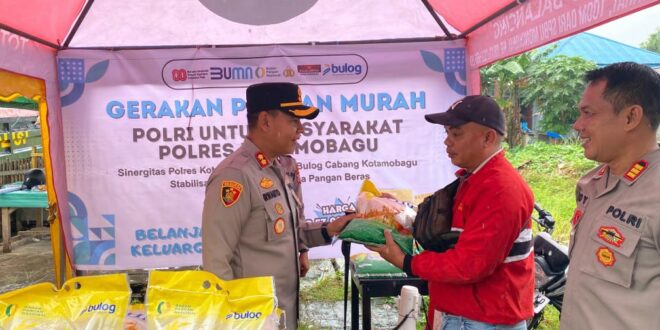 JM.Net -Kotamobagu- Demi menjaga stabilitas harga pangan khususnya beras, Polres Kotamobagu bekerjasama dengan Bulog cabang Kotamobagu menggelar gerakan pangan murah (GPM), Senin (11/8/2025).