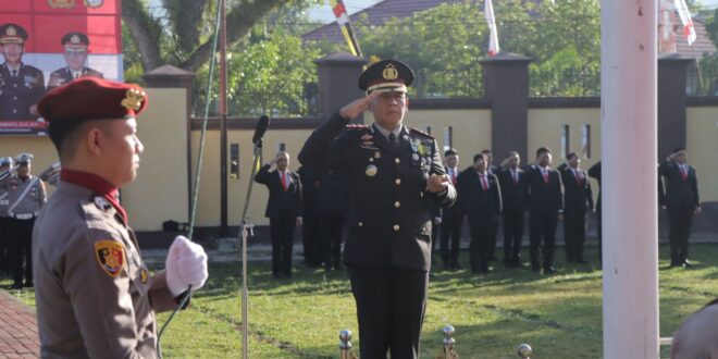 JM.net,Kotamobagu – Kapolres Kotamobagu AKBP Irwanto, SIK, MH bertindak selaku Inspektur Upacara hari kemerdekaan Republik Indonesia ke-80 di halaman upacara Mapolres Kotamobagu, Minggu (17/8/2025).