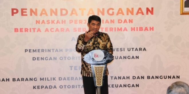 Di ketahui yang menjadi Objek Hibah Pemprov Sulut kepada OJK Yakni Jalan Diponegoro No. 51, Kelurahan Mahakeret Timur, Kecamatan Wenang, Kota Manado , Tanah ,Bangunan ,Jaringan dan Irigasi. Gubernur Sulawesi Utara, Mayjen (TNI) Purn. Yulius Selvanus Komaling dalam sambutanya menyampaikan,terima kasih atas sambutan dan penerimaan penuh kekeluargaan dari pimpinan OJK.” Ini merupakan bentuk sinergitas dan dukungan Pemprov Sulut terhadap OJK.” Ujar Gubernur YSK.