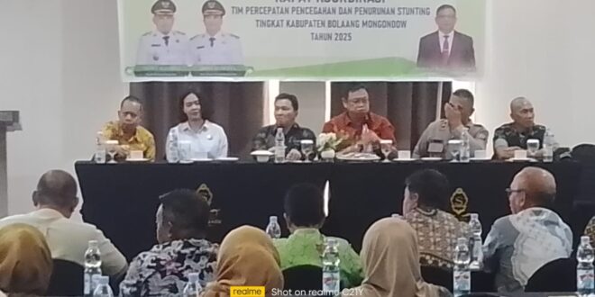 Rapat Koordinasi tersebut bertujuan untuk membahas strategi bagaimana menekan angka stunting di Kabupaten Bolaang Mongondow.